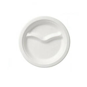 Piatto piano in polpa di cellulosa 230 mm con 2 scomparti. Cartone da 10 confezioni da 50 pz (totale 500 pz) Pallet da 42 cartoni