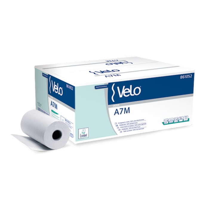 Asciugamani in carta goffrata 2 veli in rotoli da 70,3 mt pari a 190 strappi da cm 23×37. Imballo da 12 rotoli. Peso totale imballo kg 8,2. Produzione Lucart Brand Velo. PREZZO (1 ct da 12 rotoli )