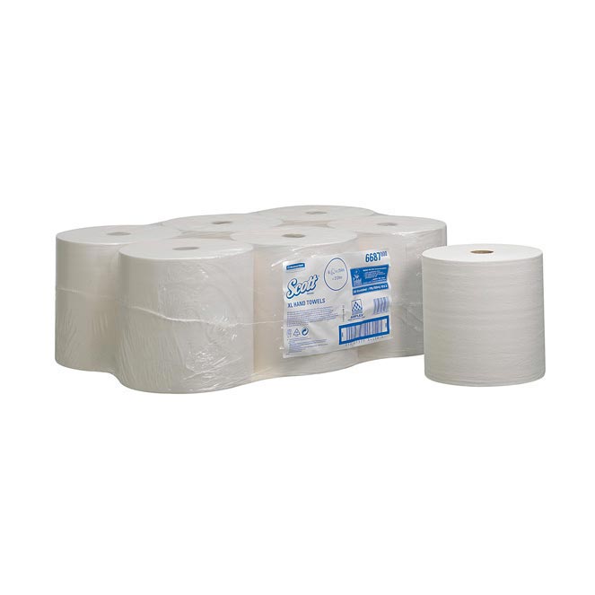 Sistema asciugamani di elevata capacità. Erogazione controllata, massimo 25 cm/foglio. Tecnologia AIRFLEX maggiore assorbenza, maggiore resistenza. Alto livello di igiene: l’utente tocca solo quello che utilizza. 1180 asciugature per rotolo, pari a 7.000 per imballo. Dispenser 9991 e 9960 elettronico