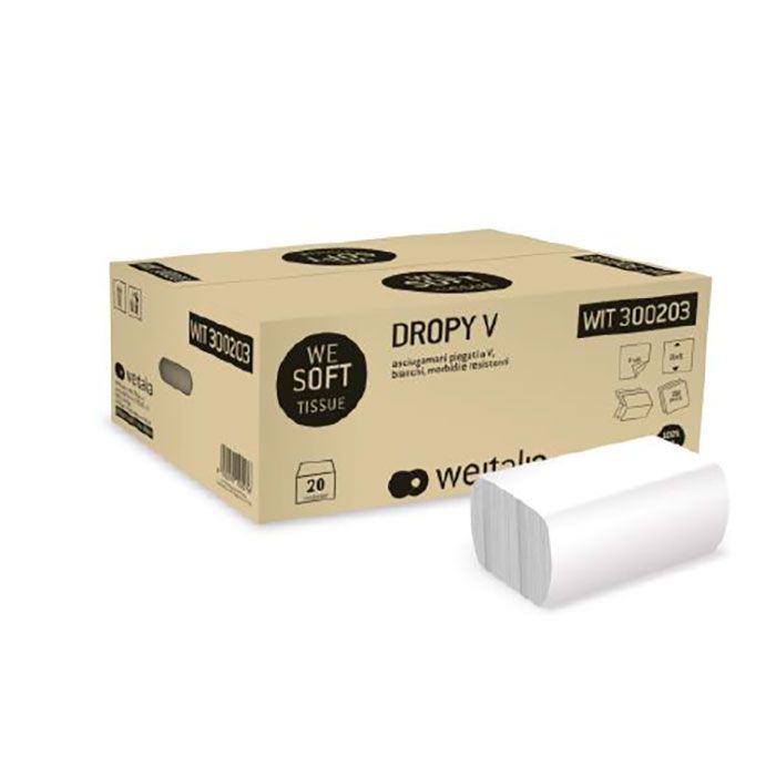 Asciugamani carta pura cellulosa 2 veli interfogliati a “V” 210 x 210 mm. Peso collo kg. 7 ca. Certificazione PEFC. Prezzo per imballo da 20 confezioni. da 190 pz (3.800 pz). Bancale da 20 colli