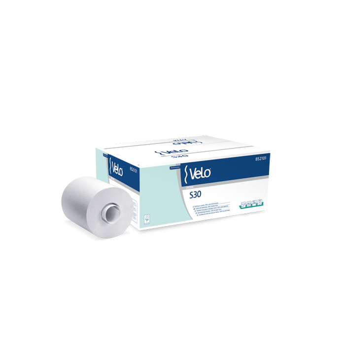 Bobinette carta 1 velo ecologica, ad estrazione centrale. Imballo da 6 rotoli da 300 mt. Peso totale imballo kg 11,3. prezzo (1 ct da 6 rot)