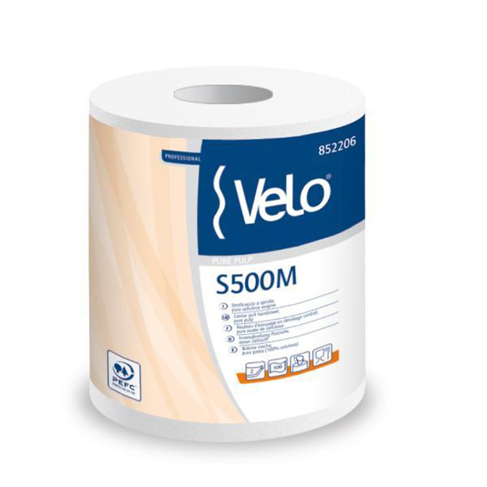 Bobinette carta pura cellulosa 2 veli anche ad estrazione centrale. Prezzo per imballo da 6 bobinette poly + maniglia da 500 strappi da cm 23 x 23 pari a mt 115. Peso totale imballo kg 5,8.