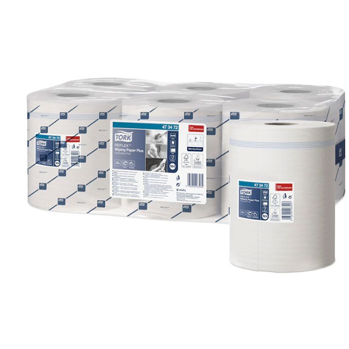 La carta per asciugatura Tork Reflex Plus multiuso 2 veli è ideale per assorbire liquidi e asciugare le mani. Questa carta può essere usata anche con il dispenser Tork Reflex a estrazione centrale singola, integrabile nel flusso di lavoro di ogni team per ridurre i consumi e minimizzare il rischio di contaminazioni incrociate.