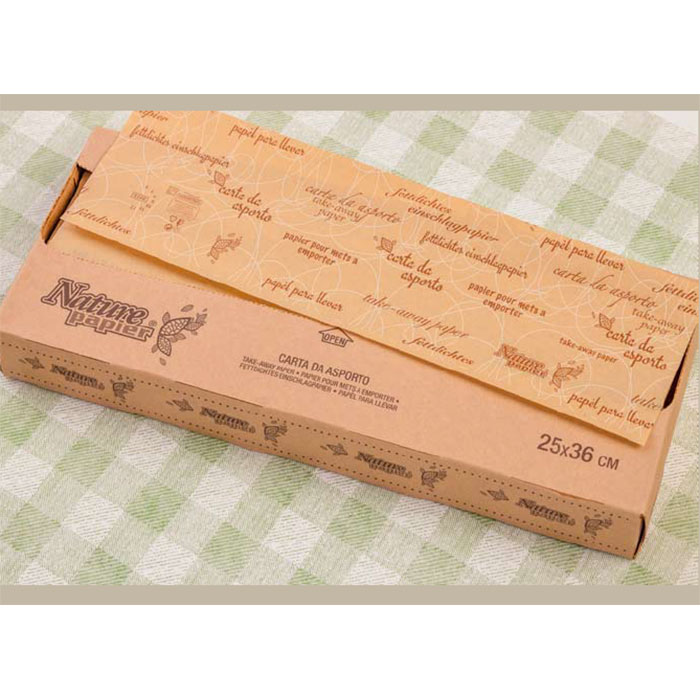 La Cartapaglia alimentare antigrasso è solo a marchio Infibra. Interfogliata in comodo box a dispenser. Si tratta di una carta in pura cellulosa con una decorazione che replica l’effetto visivo della tradizionale cartapaglia. A differenza di quest’ultima, ricca di elementi nocivi come piombo e benzene che vengono rilasciati al contatto con i cibi caldi, la Cartapaglia Infibra è compatibile al 100% anche con i cibi caldi. Prezzo per 1 confezione da 260 fogli. CT da 12 CF.