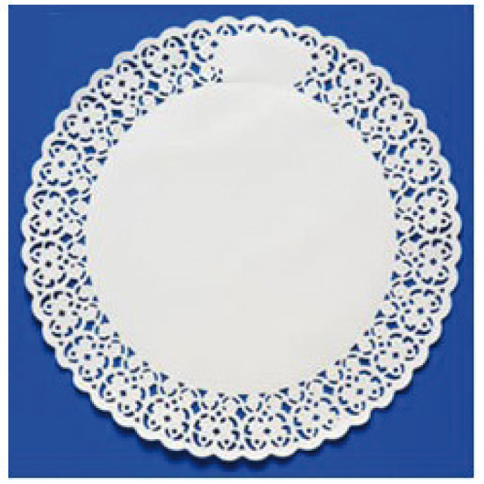 Sottopiatto decorativo rotondo in carta smerlata ad uso alimentare fustellata a pizzo. Modello tondo da 32 cm. Confezione da 250 pezzi. Imballo da 4 confezioni.