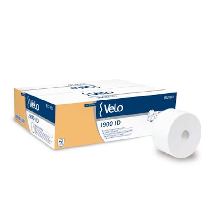 Carta igienica 2 veli formato Mini Jumbo per dispenser 892303 Identity Autocut. Imballo in cartone da 12 rotoli da 623 gr x 900 servizi cad. Peso totale collo 7,96 kg.