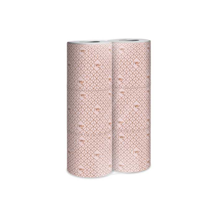 Carta igienica 3 veli pura ovatta di cellulosa fascettata tipo hotel. Prezzo per iImballo da 12 confezioni da 6 rotoli da 160 strappi da cm 9,5 x 11 pari a 15,4 mt. Peso totale imballo kg 5,4. prezzo ( 1 cf da 72 rot)