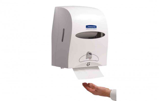 Dispenser elettronico, fotocellula, asciugamani tecnologia AIRFLEX. Lunghezza del foglio regolabile (20, 28, 36 cm). Sensibilità regolabile (bassa, media, alta). Funzione rotolo di scorta. Ospita rotoli cod 6657 6665 6667 e 6687. Dimensioni 42x32x26 cm.