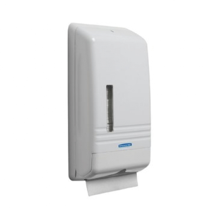 Dispenser compatto ideale per ambienti di piccole dimensioni. Ingombro cm 22x36x7. Asciugamani SCOTT Slim Fold 5856 imballo da 16 confezioni da 110 asciugamani cm 19×29,5 da 1 velo tecnologia AIRFLEX.