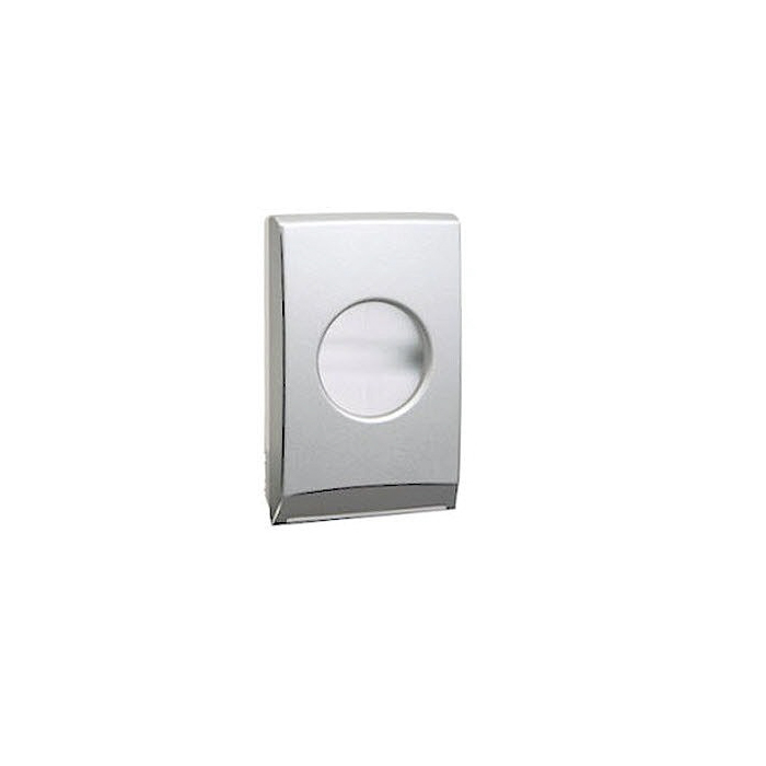 Distributore di sacchetti igienici per bagni in plastica ABS. Versioni disponibili : Bianco -Cromato – Satinato – Dorato. Possibilità di personalizzazione con stampa logo fino a 3 colori su richiesta. Dimensioni mm 97 x 137 x 27 – Imballo in cartoni da 25 o 50 pz.