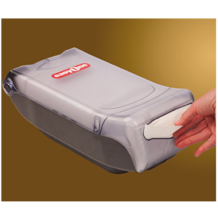 Rivoluzionario sistema di dispensazione in ABS per tovaglioli 2 veli. Contiene 500 tovaglioli. Dimensioni cm. Possibile inserire sui 2 lati lunghi, 2 messaggi pubblicitari.