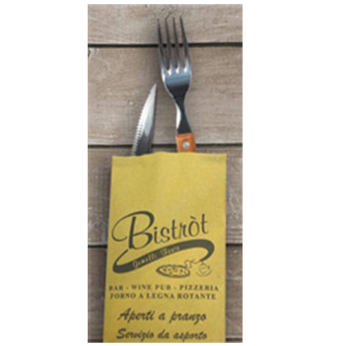 Busta carta portaposate in carta paglia + tovagliolo. Personalizzate con logo 1 colore. Prezzo per Imballo da 1.000 pz. ORDINE MINIMO 6.000 PZ