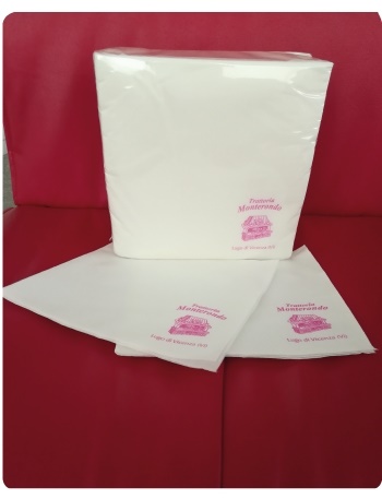 TOVAGLIOLI da cm 40 x 40 PERSONALIZZATI, materiale AIRLAID tipo tessuto in ct da 600 pz. MINIMO ORDINABILE 24.000 pz – PER PIEGATURA AD 1/8 IL COSTO AUMENTA +10% IMPiANTO STAMPA UNA TANTUM € 40,00 PER OGNI COLORE PER COPERTURA TOTALE DELL’AREA DI STAMPA COSTO CLICHE A PREVENTIVO