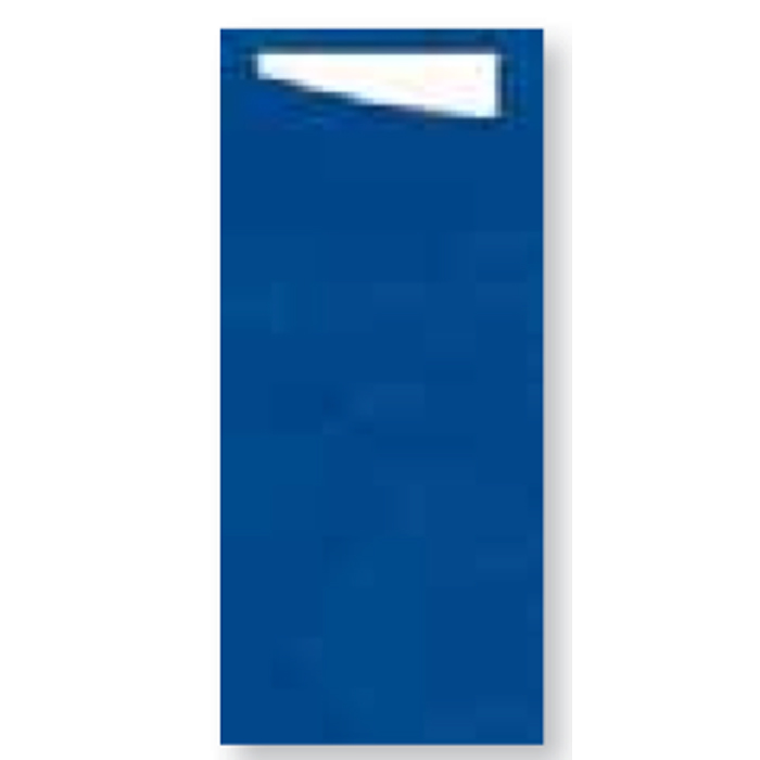 Novità DUNI : bustina di carta che contiene un tovagliolo in cellulosa nel quale si possono mettere le posate. Il sacchetto può essere preparato in anticipo e ti permette di risparmiare tempo quando si apparecchia la tavola. Dimensioni 8,5 x 20 cm – Tovagliolo Blu scuro come il sacchetto. Imballo 240 pz.