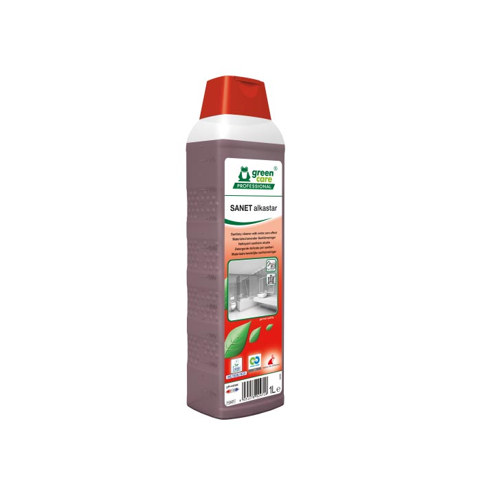 SANET alkastar è un detergente alcalino per la manutenzione e la cura dei sanitari privo di acidi e cloro. Oltre ad un’elevata compatibilità con i materiali, SANET alkastar mostra eccellenti prestazioni di pulizia specialmente contro lo sporco oleoso e grasso. Composto per la maggior parte da materie prime provenienti da risorse rinnovabili. Prodotto certificato Ecolabel e Cradle to Cradle. IMBALLO DA 10 PZ