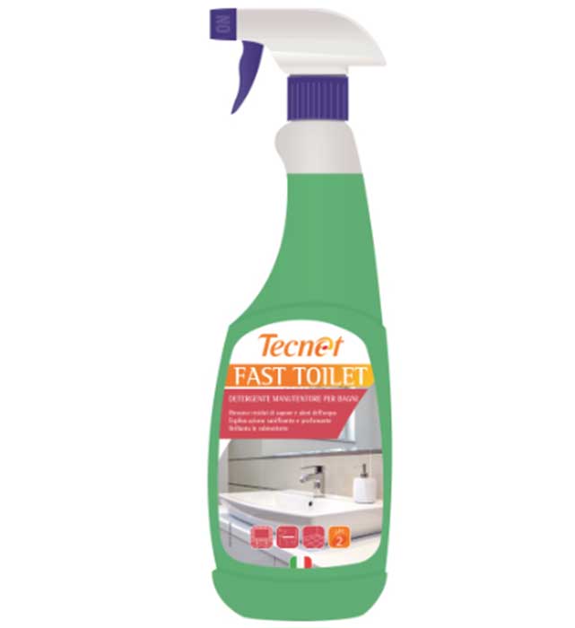 FLORCAL TECNET FAST. Prodotto specifico per lavandini, rubinetterie, piastrelle, vasche da bagno, box doccia, accessori bagno ecc. Rimuove gli aloni dell’acqua, i residui dei saponi e brillanta le rubinetterie. Detergente facilmente sciacquabile, ad effetto autoasciugante, dotato di spiccate proprietà profumanti. Esplica azione antibatterica. Imballo da 12 flaconi + 2 trigger. Prezzo (1 flacone da 0,750ml)