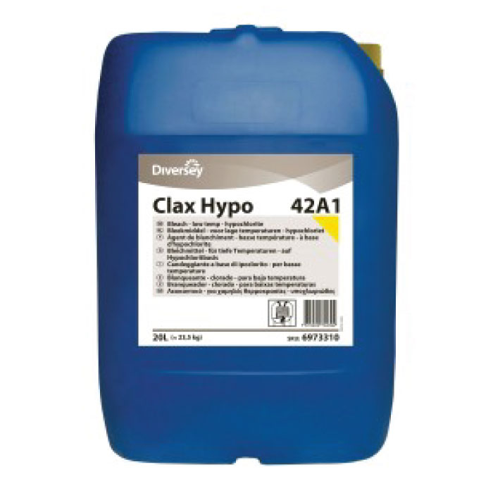 Candeggiante a base di ipoclorito. Buona smacchiatura sulla maggior parte dei tessuti. Facile da dosare. Minimo impatto chimico sul tessuto. Buon livello di igiene. Buon candeggio a basse temperature. Garantisce sicuro risparmio di energia. Produzione Diversey Tanica da 20 lt pari a 23,5 kg