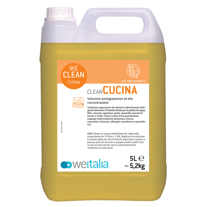 Detergente debolmente alcalino per l’uso quotidiano in ambiente Cucina, adatto per piastrelle, pavimenti, ripiani, cappe di aspirazione, filtri ecc., compreso l’alluminio. Concentrato, rimuove unto e grasso, garantisce un ottima economia d’uso. Efficace anche in presenza di acque dure. Forte azione sgrassante anche su sporchi difficili. Produzione Diversey per We Italia. Tanica da 5 lt.