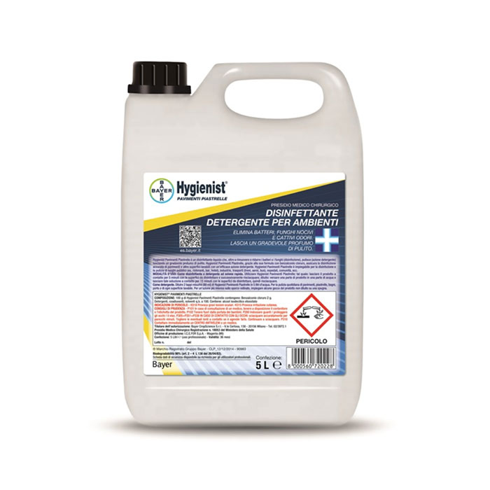 Disinfettante detergente per le grandi superfici, lascia un gradevole profumo, elimina batteri e funghi nocivi, ideale per luoghi pubblici, comunita’, industrie, trasporti e ospedali. PREZZO PER TANICA DA 5 LT