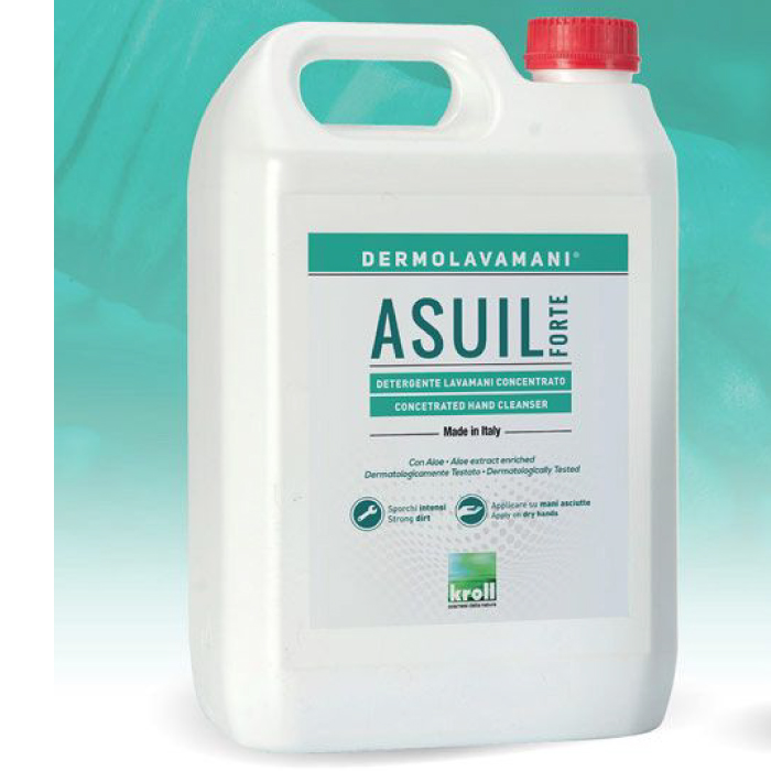 Detergente Lavamani Concentrato. Asuil Forte è un detergente liquido concentrato ad elevato potere lavante contro gli sporchi industriali e meccanici. La sua formula arricchita con Aloe rispetta il pH epidermico. Contiene tensioattivi di origine naturale vegetale da fonti rinnovabili.Dermatologicamente testata. Applicare il prodotto sulle mani asciutte, strofinare aggiungendo gradualmente acqua fino a sciogliere tutto lo sporco. Sciacquare bene ed asciugare.Non utilizzare il prodotto su parti delicate (viso, zona ascellare, parti intime). Tenere lontano dalla portata dei bambini. Evitare il contatto con gli occhi.