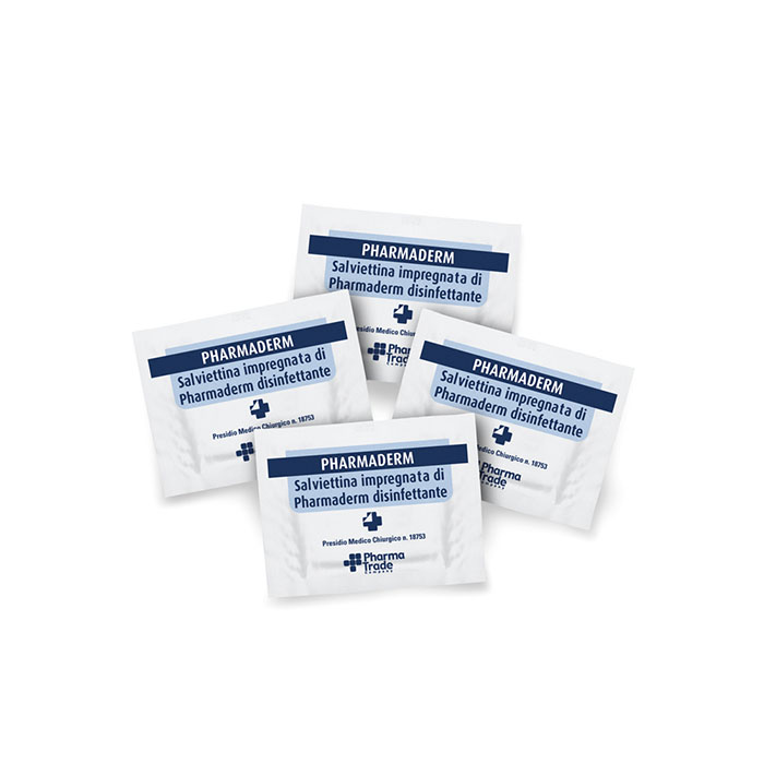 Box da 20 salviette disinfettanti. Le bustine sono prodotte con film accoppiato. Il disinfettante utilizzato non brucia, non macchia ed è un presidio medico registrato presso il Ministero della Salute. Dimensioni bustina: mm. 65×95 Dimensioni salvietta :mm 140×190 Disinfettanti presidio medico chirurgico n.18753 . Materiale salvietta: tessuto viscosa/poliestere Composizione: Didecil-dimetil ammonio -cloruro 100%, Essenza, 3 Polialchilenossidimetilsilossano, Oxo alcool 12 OE, colorante E 102, acqua. Prezzo per cartone da 200 pz.