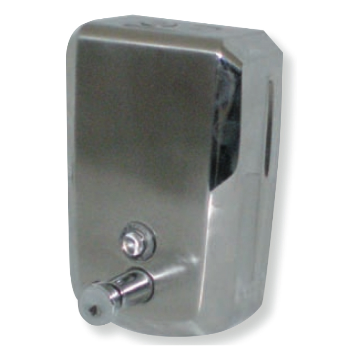 Acciaio Inox AISI 304 (18/10) A riempimento Frontale Inox satinato e laterali Inox brillante. Tanica di riempimento da 0,8 litri. Per tutti i tipi di sapone salvo a microgranuli. Viteria Inox inclusa. Sistema Push. Dimensioni 180x115x100 mm.