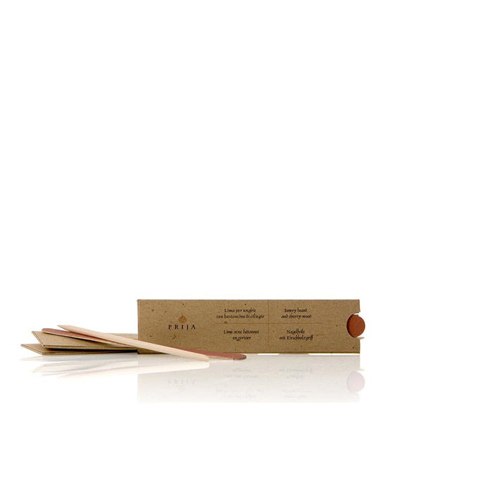 LINEA GFL “PRIJA” Lima per unghie con bastoncino di ciliegio in astuccio di carta 100% riciclata CONTENUTO: 1 lima per unghie 1 bastoncino di ciliegio DIMENSIONI ASTUCCIO CHIUSO 3,2 x 12,9 cm IMBALLO DA 100 PZ