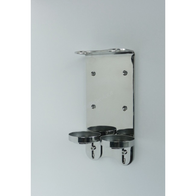 Staffa singola a muro, in acciaio inox, completa di fondello tondo utilizzabile con dispenser flaconi da 380 ml. della linea cortesia hotel GFL Prija. Prezzo e imballo per 10 pz
