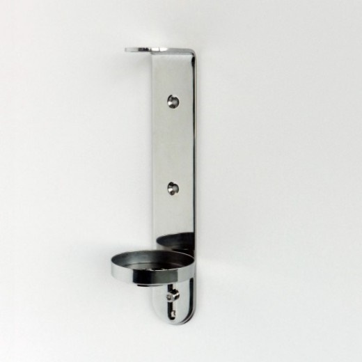 Staffa singola a muro, in acciaio inox, completa di fondello tondo utilizzabile con dispenser flaconi da 380 ml. della linea cortesia hotel GFL Prija. Prezzo e imballo per 10 pz