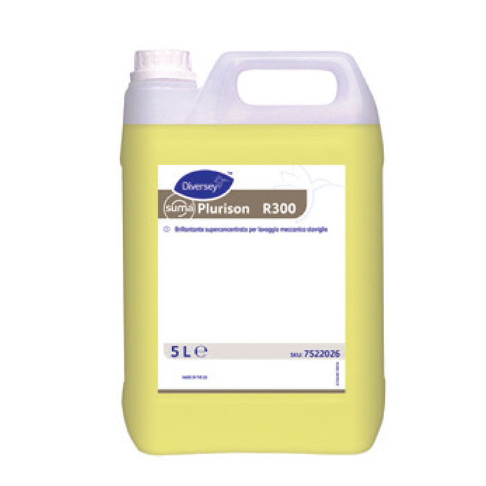 Suma Plurison R300 è un brillantante liquido studiato per essere dosato automaticamente al minimo 0,03 gr/lt mediante l’apposita apparecchiatura Diversey. Utilizzato in combinazione con Plurison T100 (liquido alcalino) e Plurison T200 con azione sequestrante) garantisce eccellenti risultati di asciugatura in qualsiasi condizione di durezza dell’acqua. Contiene una miscela di tensioattivi a bassa schiuma che assicurano un’asciugatura rapida e senza aloni delle stoviglie anche a bassissimi dosaggi. Previene la formazione delle incrostazioni calcaree anche in presenza di acque con elevata durezza. PREZZO PER 1 TANICA DA 5,6 KG.