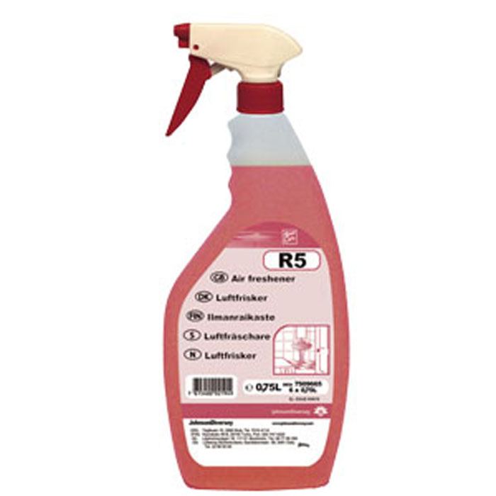 Deodorante pronto all’uso. Lascia nelle camere un piacevole profumo di pulito. Rappresenta un valido aiuto per rinfrescare e deodorare l.ambiente, se utilizzato in combinazione con i prodotti della linea Room Care. Caratterizzato da codice colore e alfanumerico per prevenire errori di applicazione Prezzo per flacone da 750 ml. Cartone da 6 flaconi.