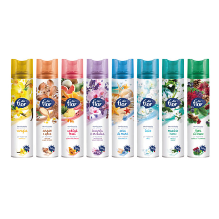 Deodorante spray dipsonibile con le seguenti profumazionii : aria di mare, lavanda e orchidea, muschio bianco, talco. Produttore Bergen. Imballo da 24 conf. da 300 ml.