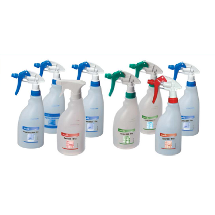 Flaconi spruzzatori serigrafati da 500 ml per l’applicazione di prodotti QUATTRO SELECT Sprint Emerel (cod+77) – Sani cID (cod+60) – Sprint 200 (cod +61) – Sani Calc (cod+72) Imballi da 5 pz per codice.