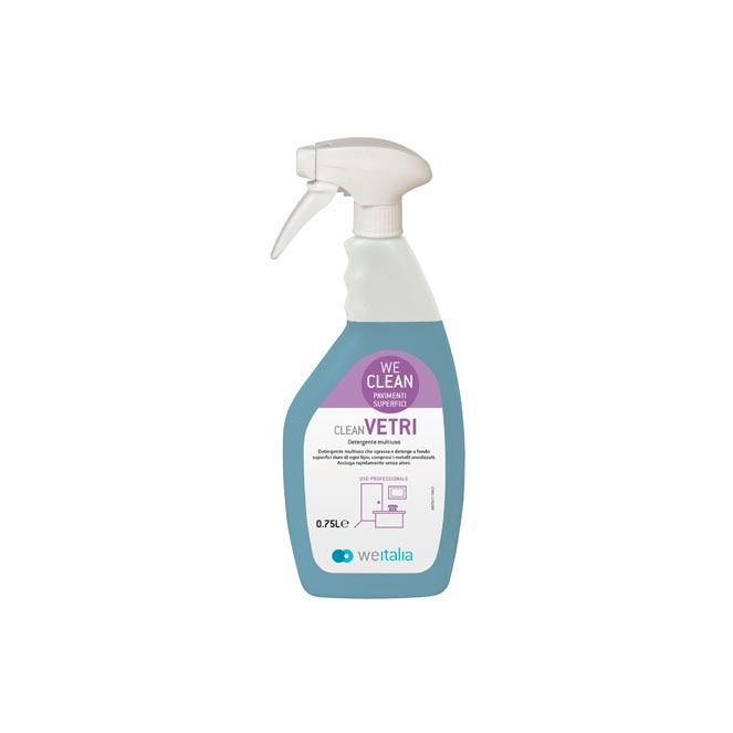 Detergente a base alcolica pronto all’uso, ideale pulizia dei vetri e tutte le superfici lavabili. We Clean Vetri è un detergente multiuso che sgrassa e deterge a fondo superfici dure di ogni tipo, compresi i metalli anodizzati. Asciuga rapidamente senza lasciare aloni. Ideale per la pulizia dei vetri e specchi. Asciuga rapidamente senza lasciare aloni. Imballo da 6 pz.