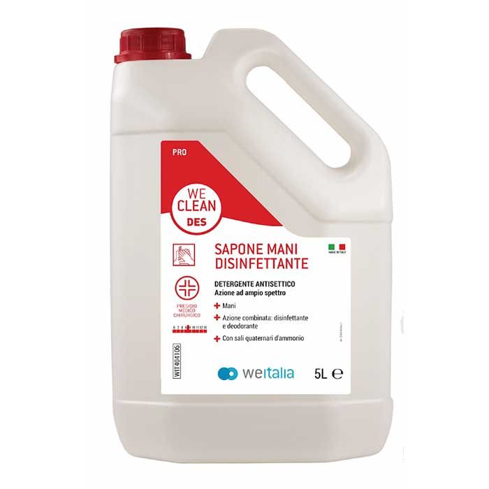 PRESIDIO MEDICO CHIRURGICO. Detergente disinfettante per l’igiene personale. Detergente antisettico a base di sali quaternari di ammonio della terza generazione, detergendo svolge una efficace azione disinfettante ad ampio spettro. La freschezza, la bassa schiumosità conferiscono una gradevolezza di impiego, il delicato profumo determina un effetto deodorante persistente per tutto il giorno. PREZZO PER 1 TANICA – IMBALLO DA 4 TANICHE