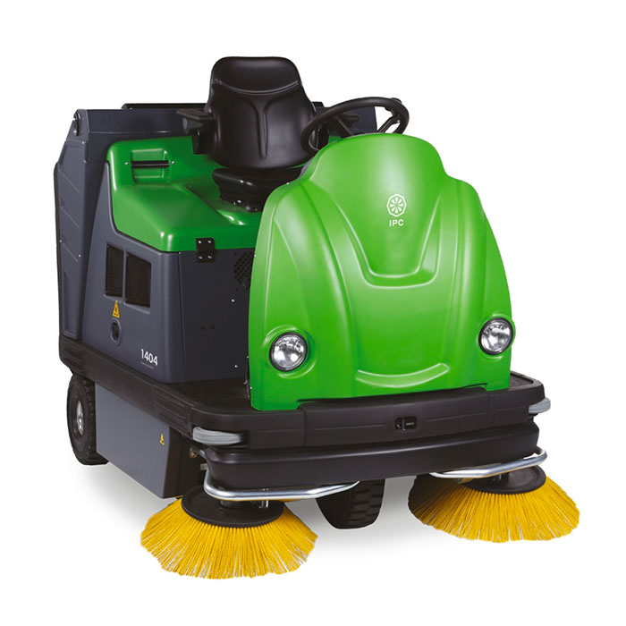 IPC 1404 è una spazzatrice uomo a bordo professionale, costruita con materiali durevoli e un innovativo sistema di alimentazione ibrido Dual Power. Il motore è equipaggiato con un sistema di protezione termica mentre, per ulteriore garanzia di sicurezza, anche le spazzole laterali sono protette con un sistema antiurto. Modello elettrico con batterie e caricabatterie.