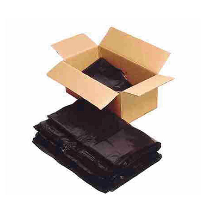 Buste per rifiuti in PP riciclato colore nero. Spessore 80 my. Alta resistenza. POLIECO assolto all’origine. Prezzo per 1 ct da 20 kg. lordo pari a circa 130 pz per cartone.