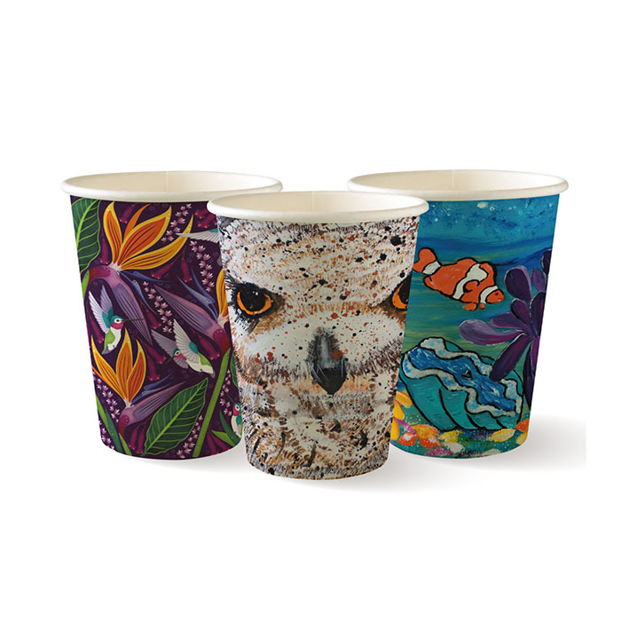 Le Art Series sono probabilmente le tazze più alla moda che raccontano la storia sostenibile dell’arte in movimento. Il concetto comprende delle opere d’arte a tema ambientale di artisti europei, australiani e neozelandesi pubblicate ogni 8 settimane. Ogni cartone contiene un bel mix creativo di 3 opere d’arte, che permette alla vostra azienda di attirare l’attenzione sui social media. Le nostre tazze Art Series sono fabbricate a partire da carta proveniente da piantagioni controllate. Con il rivestimento di una bioplastica vegetale, sono compostabili a livello industriale e realizzate per l’economia circolare.