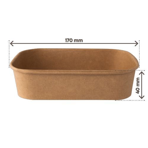 Bowl rettangolare monouso in cartoncino poliaccoppiato riciclabile – 500 ml/17 oz. Lunghezza 170 mm x Larghezzza 120 mm x Altezza 40 mm Prezzo per cartone da 300 pz. (6 cf x 50 pz.) Codice coperchio SSBIO005COP