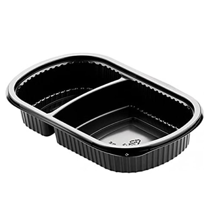 Scatola biscomparto DUNI in PP: -20°C to +120°C Dimenisoni: 240x150x40 Capacità ml: 500/250 Disponibili ccoperchi trasparentI codice SFD161181