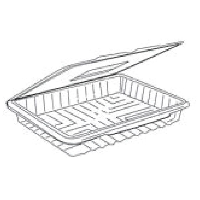 Contenitore rettangolare con COPERCHIO PIATTO a cerniera in PET. Apertura facile con alette bilaterali. Pareti resistenti all’impilaggio. Capacità 1500 cc – dimensioni 225 x 170 H.50. – Imballo da 200 pezzi