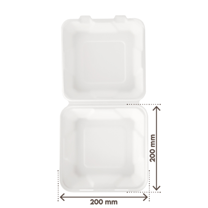Lunch box quadrato cm.20×20 in fibra di canna da zucchero. Cartone 4 cf da 50 pz. Totale 200 pz. CONAI CARTA incluso nel prezzo pari a € 0,224 a cartone.