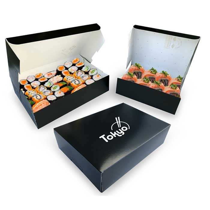 Scatola SCRIGNO colore bianco oppure colore nero, take away con lato interno in PE-protect idoneo al contatto diretto con gli alimenti
