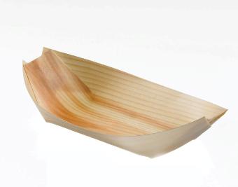 Linea Finger food contenitore Piroga in legno piccola colore naturale. Dimensioni: cm. 12x6x3 Prezzo per confezione: 100 pz. 20 confezioni da 100 pz per cartone.