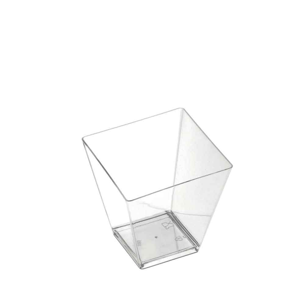 LINEA FINGER FOOD. Coppetta in PS trasparente. Forma ROMBO, contenuto 95 cc. Disponibili in varie altre forme e colori. Imballo da 20 confezioni da 25 pz. (500).