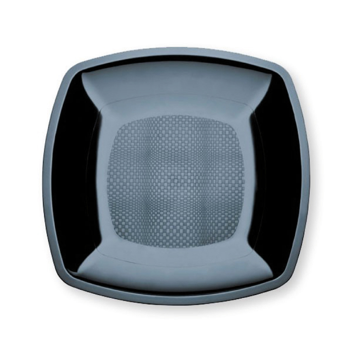 Piatto quadro dessert in PP polistirolo nero da 180 mm. NON Adatto per l’utilizzo in forno microonde. Imballo da 12 confezioni da 25 pz (300 pz). prezzo (1 ct da 12 cf)