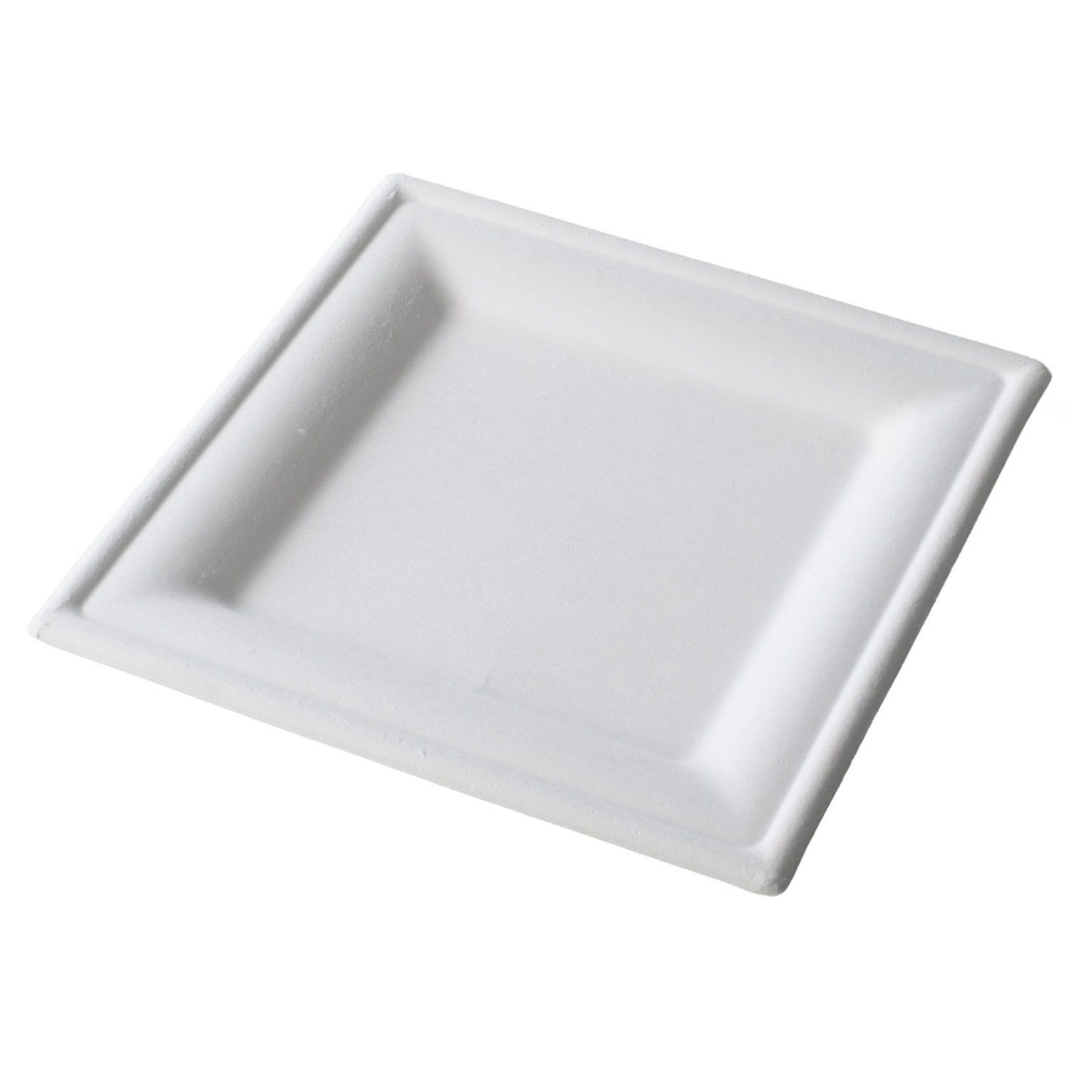 Piatto quadrato biodegradabile e compostabile in fibra di canna da zucchero, ideale per tutti i cibi. Specifiche tecniche: 260×260 mm, QUADRATO Prezzo per imballo da 250 pezzi.