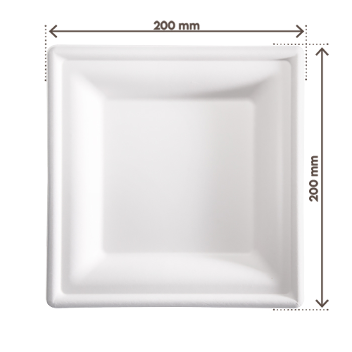 Piatto quadrato biodegradabile e compostabile in fibra di canna da zucchero, ideale per tutti i cibi.