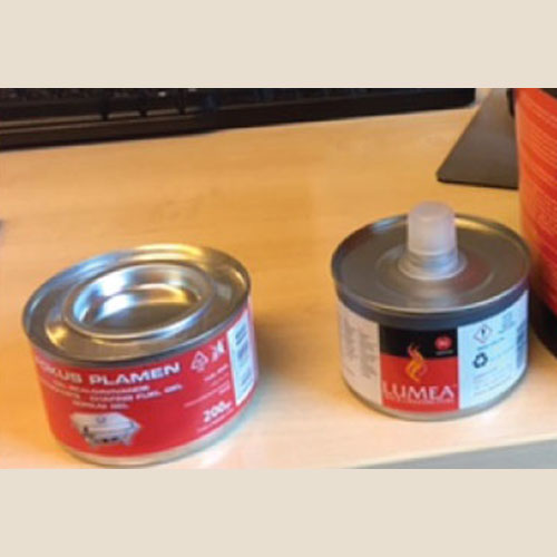 Fornellino con gel per scaldavivande. Prodottio composto da etanolo al 100%, quindi in linea con la regolamentazione EU e Italiana che non permette miscele diverse. Non produce fumo o odore. Imballo da 24 pz. Disponibile anche barattolo da 4 kg. per la ricarica.
