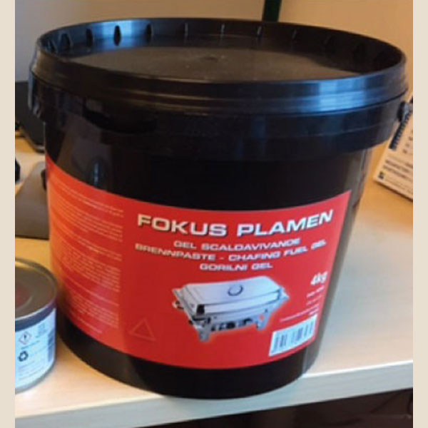 Pasta gel combustibile per scaldavivande. Prodotto composto da etanolo al 100%, quindi in linea con la regolamentazione EU e Italiana che non permette miscele diverse. Non produce fumo o odore. Confezione in secchio da 4 kg.
